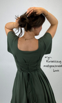 Die fließenden Flügelärmel, die ungefähr bis zur Mitte des Oberarms reichen, verleihen dem Kleid eine sanfte, feminine Bewegung, während der figurbetonte Schnitt deine Silhouette wunderschön unterstreicht, ganz ohne einzuengen.