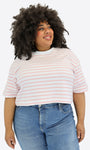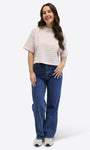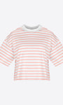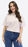 Das Crop T-Shirt überzeugt in einer frischen, soften Farbkombination aus zartem Blau und Off White. Die feinen Streifen verleihen dem Look eine leichte, sommerliche Note und machen das Shirt zu einem besonderen Hingucker. Die harmonischen Farben lassen sich vielseitig stylen und bringen eine neue, moderne Nuance in deinen Kleiderschrank.