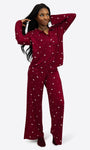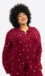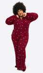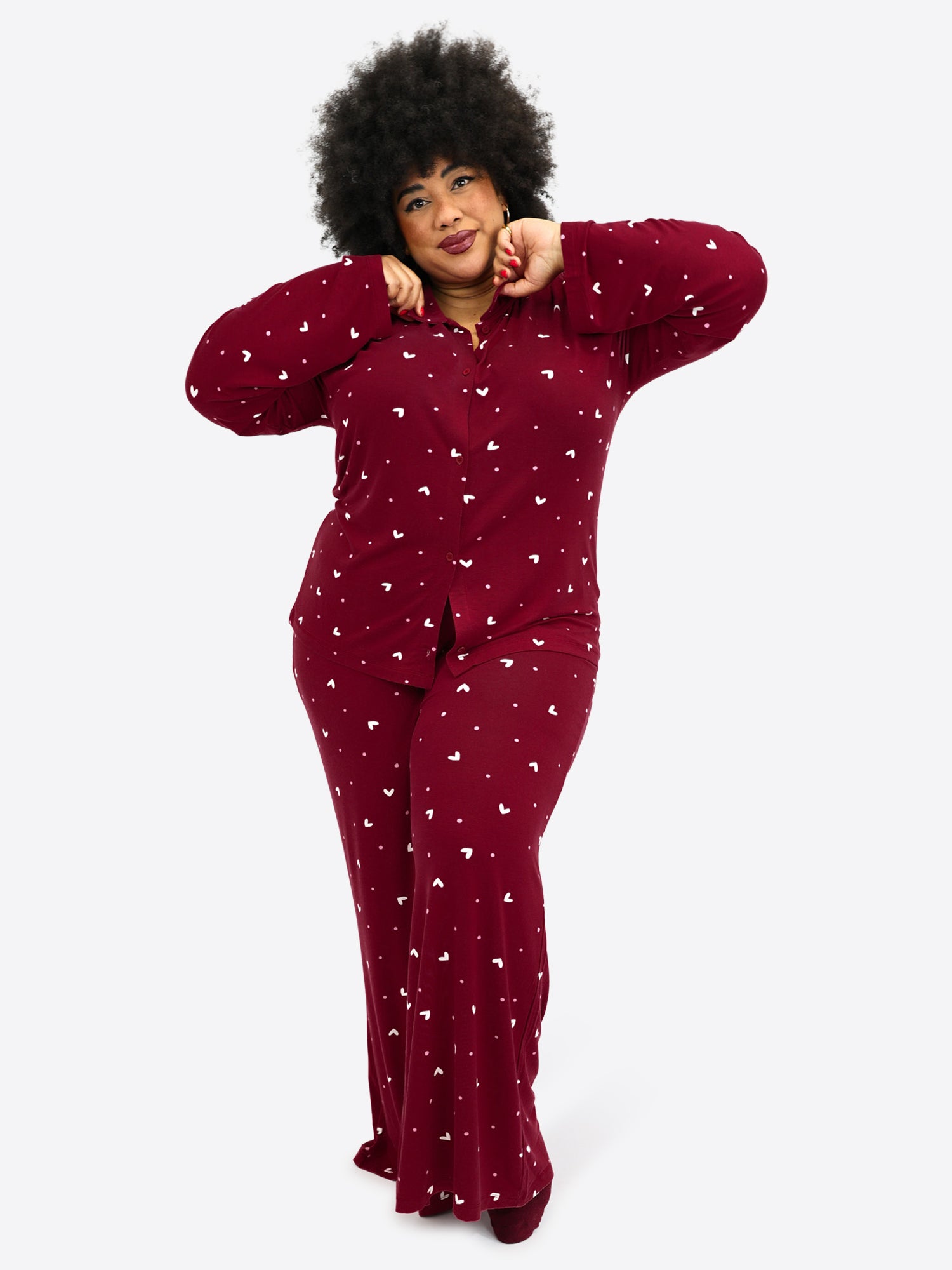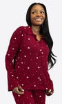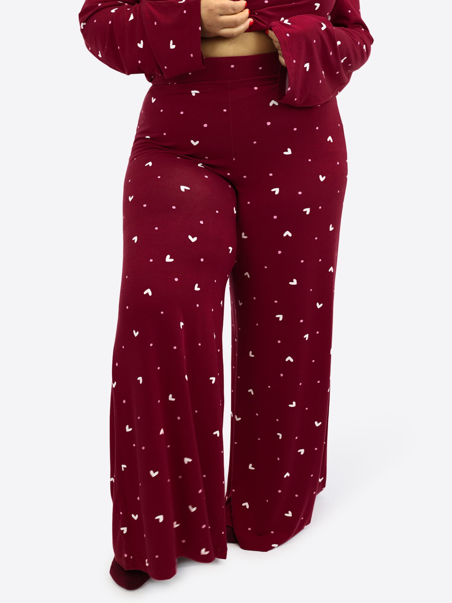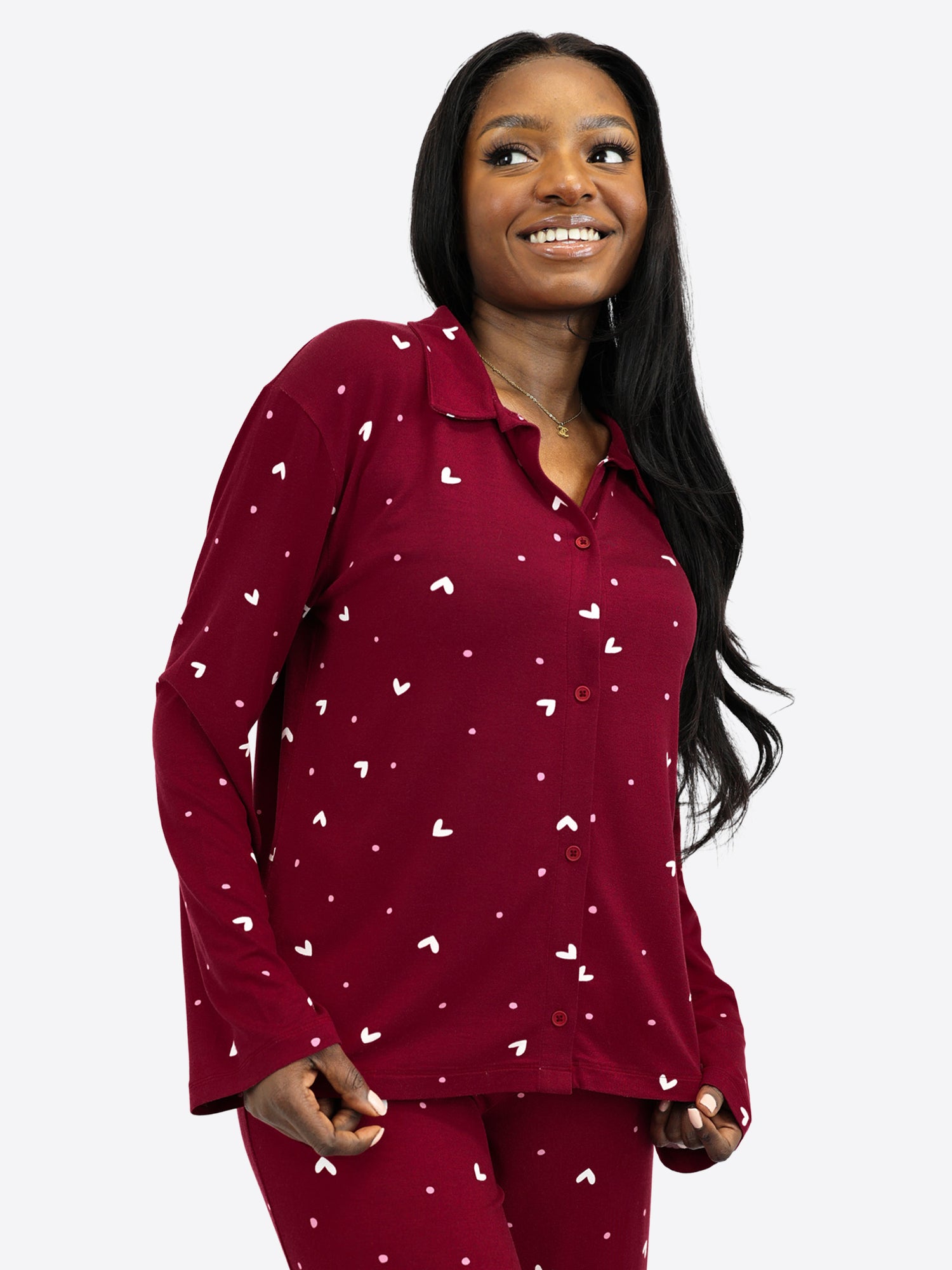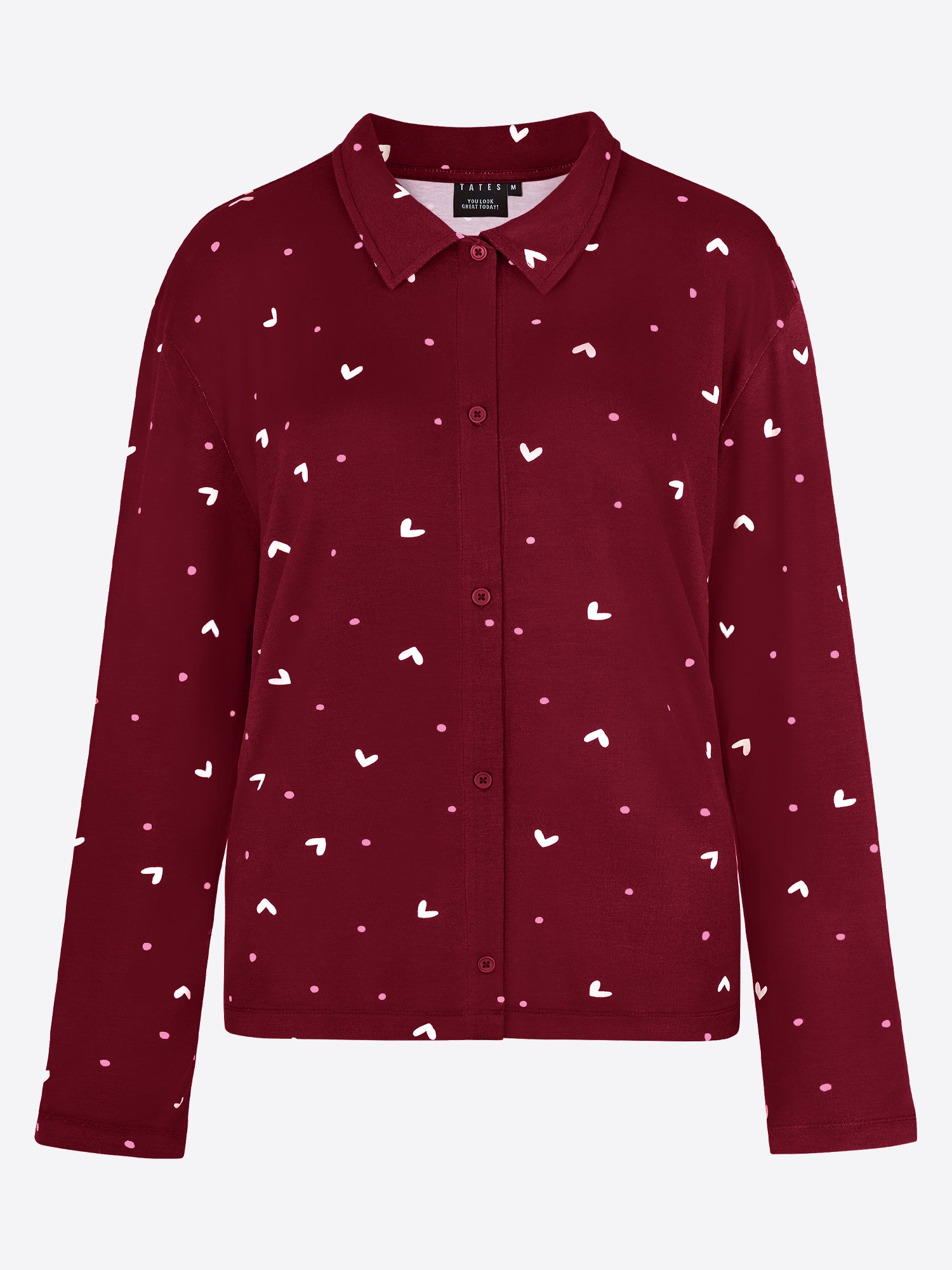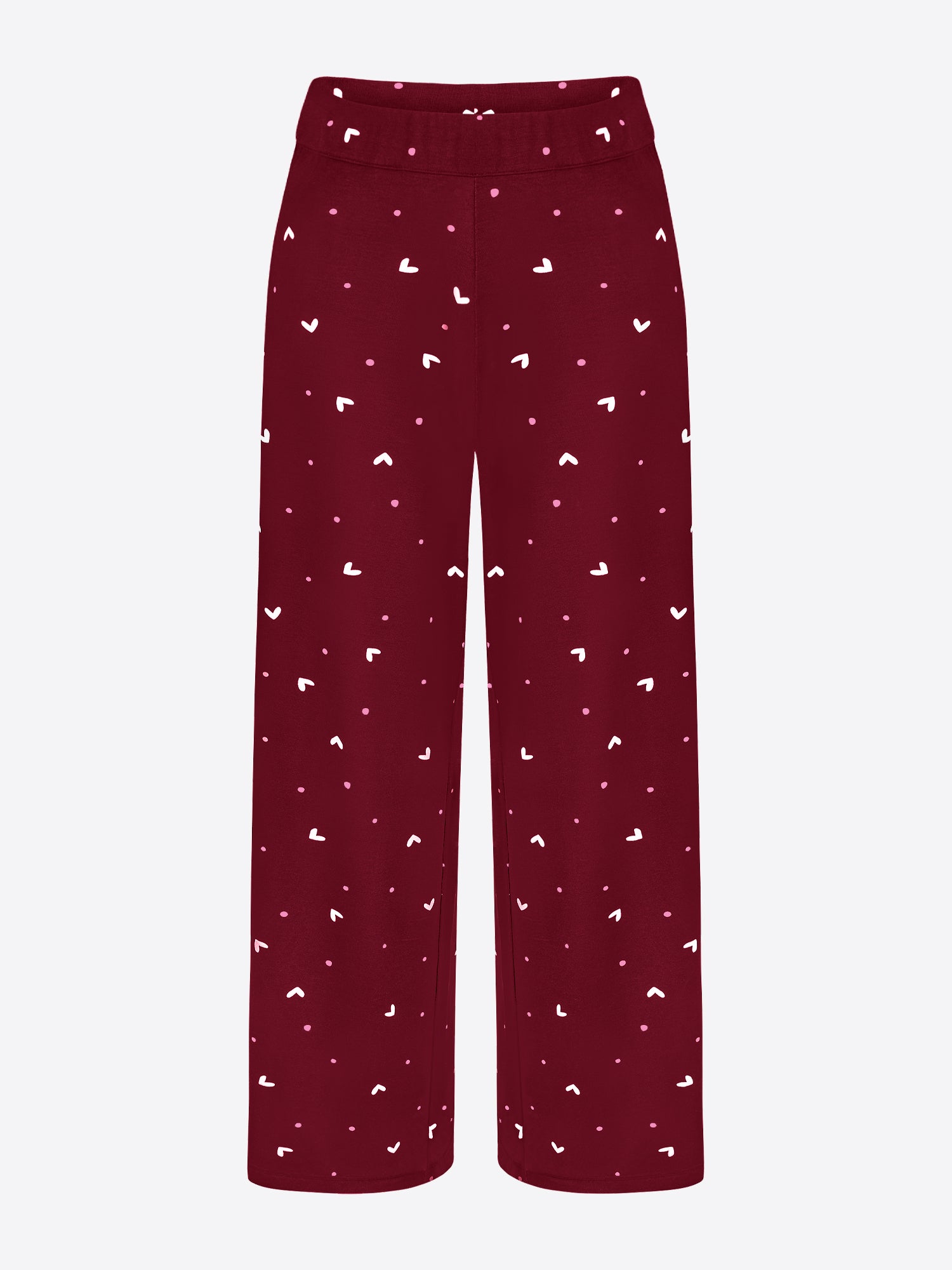 Ein angenehmes Dunkelrot mit zarten weißen Herzchen und Rosa Pünktchen. Feminin, weich und einfach zum Wohlfühlen.