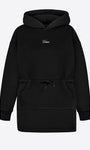 Unser Hoodie Kleid vereint den lässigen Look eines klassischen Hoodies mit der femininen Silhouette eines Kleids – für alle, die es bequem und gleichzeitig stylish mögen. In zeitlosem Schwarz und mit hochwertigen Materialien ist dieses Piece ein echtes Must-have für kühlere Tage, entspannte Abende oder den nächsten City-Trip.