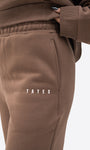 Das Material besteht aus 70% Baumwolle (Bio-Baumwolle) und 30% Polyester (Recyceltes Polyester). Unsere Jogginghose ist auf der linken Vorderseite bestickt.