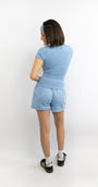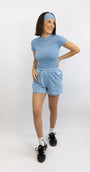 Light Jogginghose kurz mit Biese – Dusty Blue