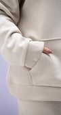 Jeder Hoodie ist in der Türkei fair produziert und kommt in neun Farben: Aubergine, Off White, Schwarz, Beige, Chocolate, Bordeaux, Flieder, Hellblau und Rosa.