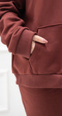 Jeder Hoodie ist in der Türkei fair produziert und kommt in neun Farben: Aubergine, Off White, Schwarz, Beige, Chocolate, Bordeaux, Flieder, Hellblau und Rosa.