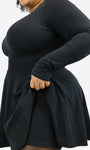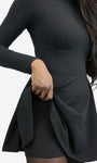 Mit unserem kurzen Skort-Kleid mit langen Ärmeln bringen wir Komfort, Stil und Funktionalität in Einklang – ein schlichtes, schwarzes Kleid, das alles andere als basic ist. Körpernah geschnitten, schmeichelt es deiner Figur und überrascht mit einem cleveren Detail: eine integrierte Hose, die dir maximale Bewegungsfreiheit und Sicherheit schenkt – egal ob im Alltag, auf dem Fahrrad oder beim nächsten City-Stroll.