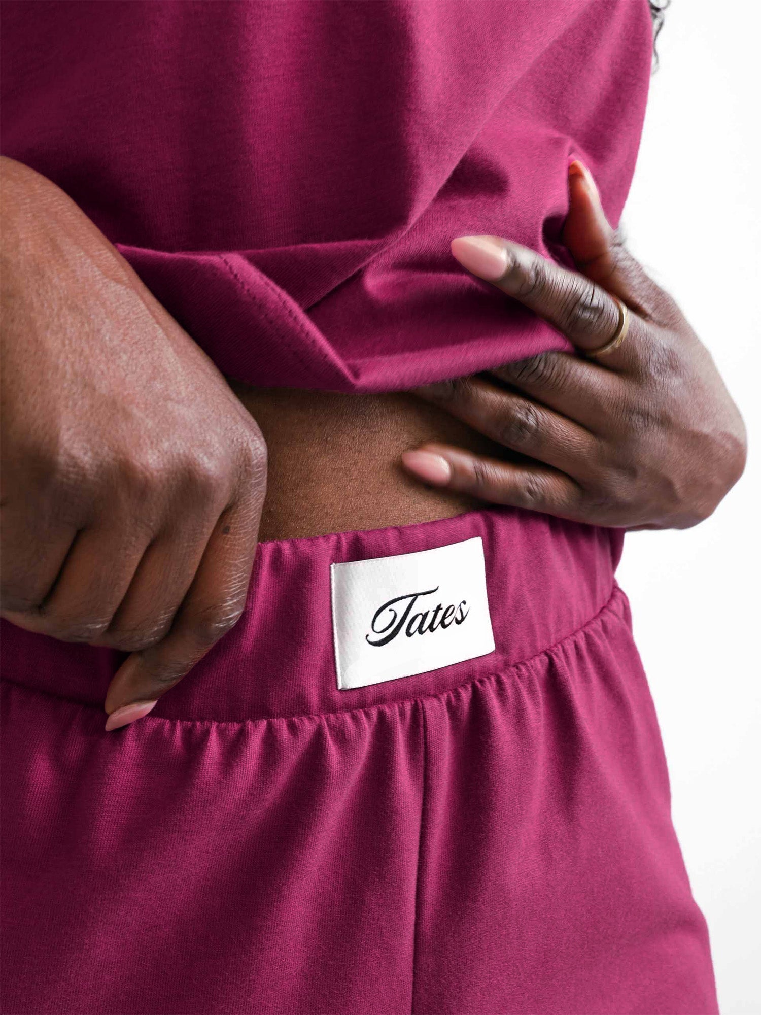 Das besondere Highlight unserer Wide Leg Hose: Das Tates-Patch am Bündchen.