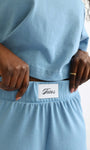 Das besondere Highlight unserer Soft Touch Wide Leg Pants - Das Tates-Patch am Bündchen.