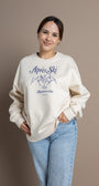 Unser "Aprés Ski Mountain Club" Sweater ist in der Farbe Natural Raw erhältlich. Der Sweater sitzt in deiner normalen Größe oversized - bitte beachte die Größentabelle. Das Material besteht aus 85% Baumwolle (Bio-Baumwolle) und 15% Polyester (Recyceltes Polyester). Der Sweater ist auf der Vorderseite bedruckt.