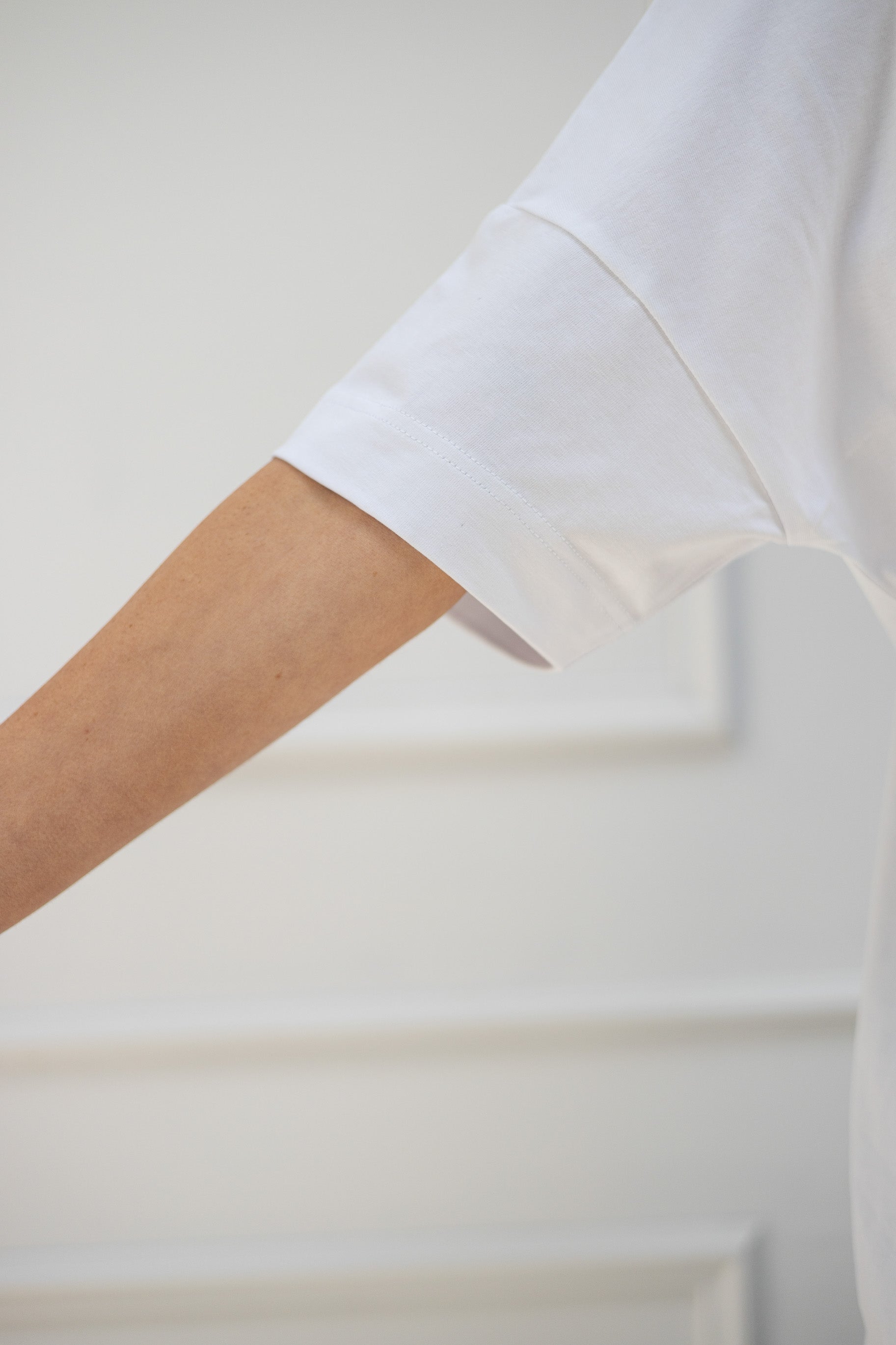 Unser "Birthflowers" Shirt ist in der Farbe Weiß erhältlich. Es hat eine lässige Passform mit längeren Ärmeln, sitzt insgesamt eher oversized und fällt dadurch größer aus. In deiner normalen Größe sitzt das Shirt oversized – bitte beachte die Größentabelle. Es besteht aus 100% Baumwolle (Bio-Baumwolle) und wurde unter fairen und nachhaltigen Bedingungen hergestellt. Unser Shirt ist auf der Vorder- und Rückseite bedruckt.
