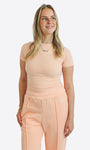 Erhältlich ist das Slim T-Shirt in Hellblau, Bubble Pink, Peach, Butter Yellow, Matcha, Dusty Blue, Berry, Rouge, Schwarz und Aubergine erhältlich.